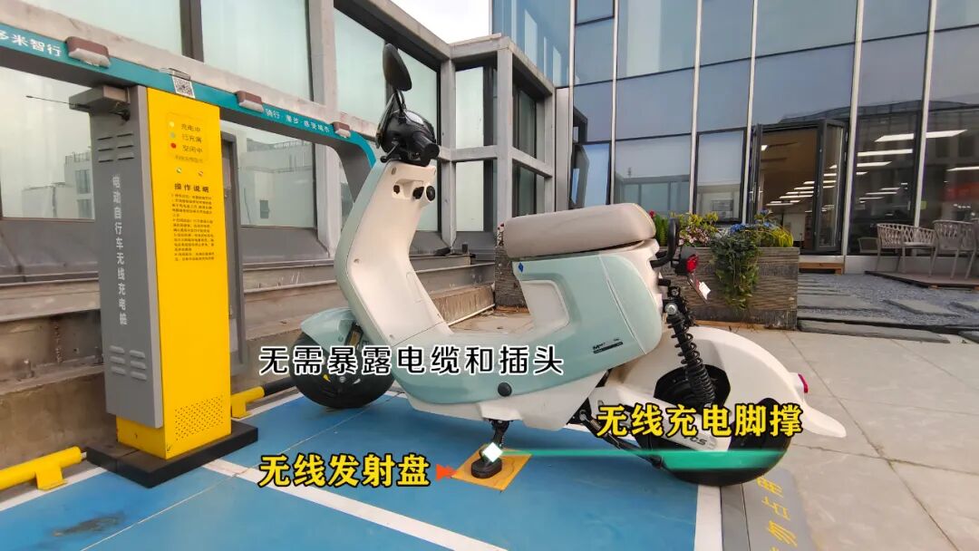 传统电单车租赁的痛点集中于两大核心场景:车辆停放无序与电池续航焦虑。多米以无线充电技术为突破口,创新性地将电单车脚撑改造为无线充电接收装置,配合定制化无线充电桩,实现“还车即充电”的无缝衔接。解决运营过程中车辆蓄电不足的问题,更通过充电桩的定点布局,将“随意停放”转化为“规范归位”,减少车辆占道、乱停乱放对城市公共空间的侵占。