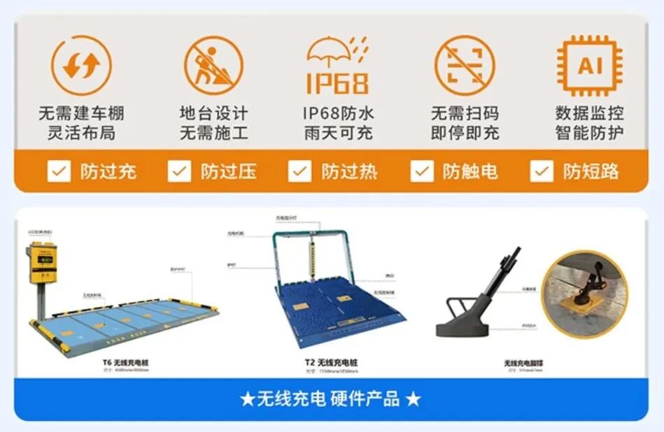 -绝对防水:无需暴露的电缆和插头,满足IP68级防尘防水标准,在雨天、积水环境下仍能安全运行,彻底打破“雨天禁止充电”的局限。